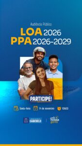 A Comissão de Orçamento e Finanças da Câmara Municipal de Cabedelo vai realizar, no Plenário Vereador Fernando Macedo, na próxima sexta-feira (14), uma Audiência Pública para debater a LOA 2026 e o PPA 2026-2029.
